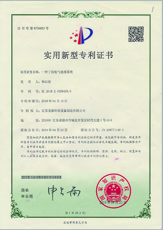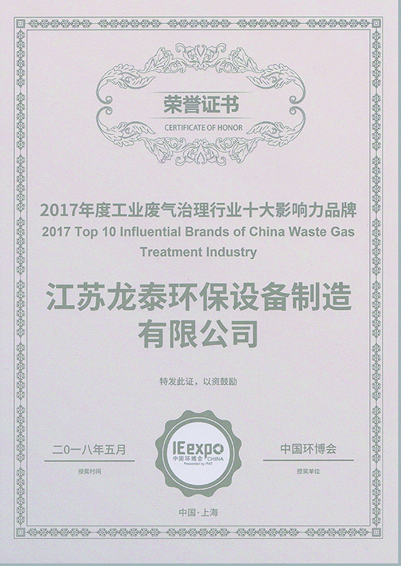 公司先后獲得工業廢氣治理行業十大影響力品牌、大氣污染防治工程設計資質、